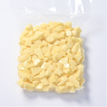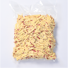 自社の加工ラインで、食材に合わせた処理・洗浄を行い、安定した品質のカット野菜を製造・供給しています。角切りなど加工が難しい野菜にも対応し、料理に合わせた形状で、調理現場の負担軽減をサポート。電解水を使用した品質保持や、スライス・千切り・ダイスカットなどの機械加工により、用途に応じた製品づくりを行っています。また、チルド配送による鮮度管理を徹底し、賞味期限はD+6を基本とした供給体制を整えています。