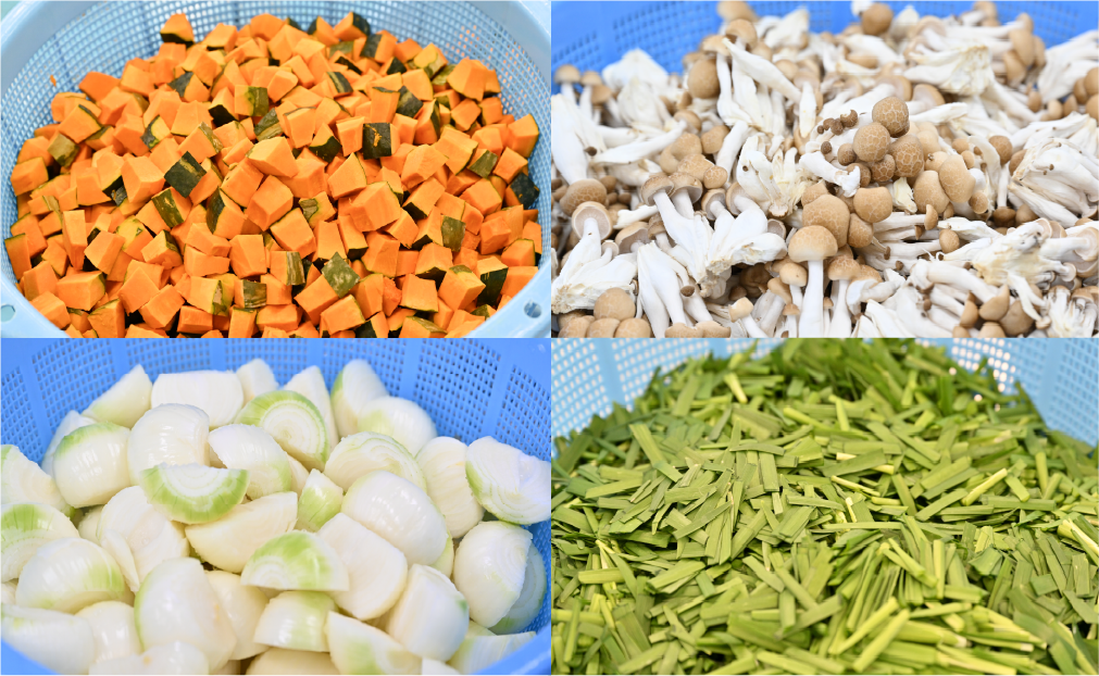 多様なカット形状や下処理に対応し、開封後すぐに調理へ使える業務用カット野菜をご提供しています。お客様の調理環境・メニューに合わせた最適な形でお届けできるのが特長です。製品の一例です。今後もラインナップを順次拡充してまいります。